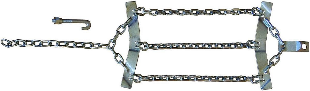 - Emergency chains are used to attach to the wheel with a chain pulled through a hole in the rim and tightened with a bolt and nut. The chains are resistant to cuts on the sharp edges of steel rim holes.